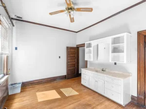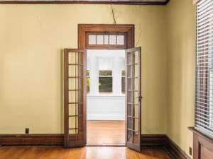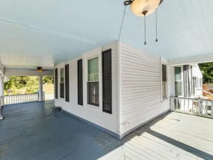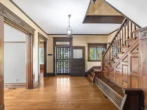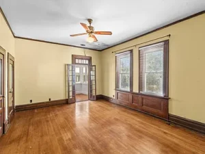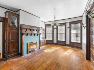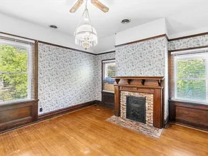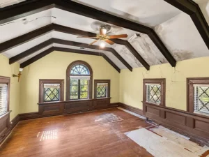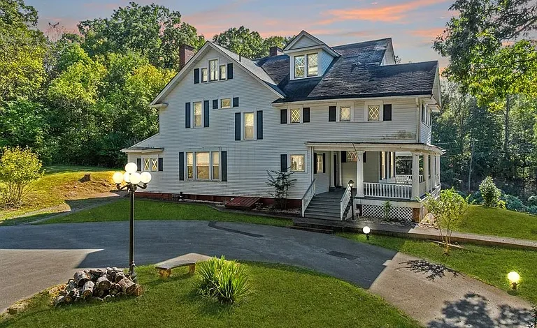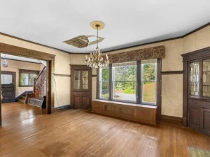 Spanning over 4,000 square feet, the home features 5 bedrooms and 2 bathrooms, with large, light-filled rooms that reflect the elegance of its era. Even in its current condition, the craftsmanship throughout this 7-acre property remains evident. Architectural highlights include stately Tuscan columns, classic Palladian windows, and beautifully preserved trimwork that speaks to the home’s original design and character.