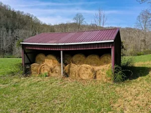 Adding to the functionality of this 77.85-acre property are several existing structures, including three hay or storage sheds and an older barn. These improvements provide immediate utility for farming operations or storage needs, further justifying the appealing $140,000 price point. A small creek located near the back of the land enhances the property’s charm, offering a natural water feature that supports both wildlife and the overall landscape.