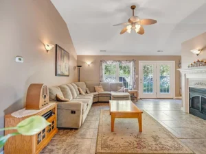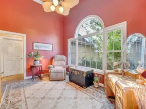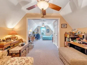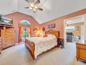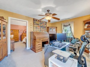 The cozy living room features propane gas logs, creating a warm and welcoming atmosphere during cooler Virginia evenings. The main-level primary suite enhances the home’s convenience, offering what could serve as a private office, nursery, or dressing room. Having this flexible bonus space within the primary suite adds both function and value to the 15.66-acre property priced at $464,900.