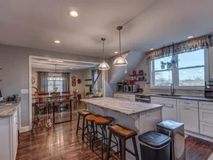 The kitchen truly stands out as the heart of the home. Featuring a 48-inch professional dual-fuel stove, updated cabinetry, and a spacious island, it’s ideal for preparing meals after a long day on your land. All kitchen appliances, along with the washer and dryer, are included in the $398,000 price — adding even more value to this Mount Sterling, KY property.