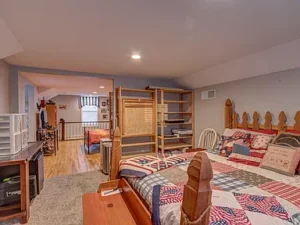 Upstairs, the home continues to impress with a loft-style bedroom area, an additional bedroom through a charming archway, and a cozy nook that could serve as a home office, nursery, or reading space. With 3 bedrooms and 2 bathrooms across 1,842 square feet, this 15-acre Mount Sterling, KY farmhouse offers flexibility for families, guests, or remote work needs.