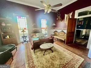 The Victorian home features 3 bedrooms and 2 bathrooms, with over 2,200 square feet of living space filled with original character. Inside, you’ll find 10-foot ceilings, beautiful original hardwood floors, and multiple fireplaces that reflect the craftsmanship of a bygone era. This historic residence on 8.66 acres in Summerville, GA provides the perfect canvas for restoration, allowing you to preserve its charm while adding modern touches.