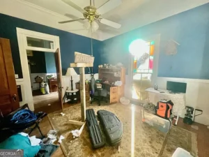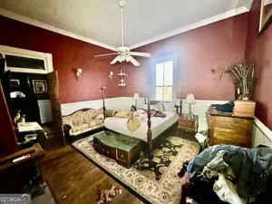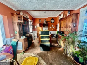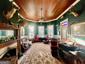 The Victorian home features 3 bedrooms and 2 bathrooms, with over 2,200 square feet of living space filled with original character. Inside, you’ll find 10-foot ceilings, beautiful original hardwood floors, and multiple fireplaces that reflect the craftsmanship of a bygone era. This historic residence on 8.66 acres in Summerville, GA provides the perfect canvas for restoration, allowing you to preserve its charm while adding modern touches.