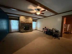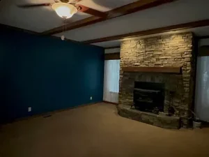 The home features 3 bedrooms and 2 bathrooms across approximately 1,987 square feet, offering a spacious and functional layout. The living room serves as a central gathering space, highlighted by a cozy fireplace that adds warmth and charm—perfect for relaxing evenings or entertaining guests. This inviting area makes the home feel comfortable and welcoming from the moment you step inside.