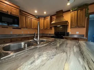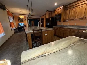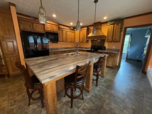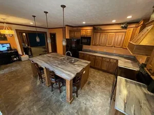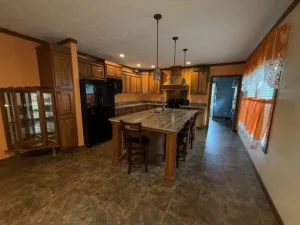 The kitchen is a standout feature of this 15-acre property in Hatfield, KY, offering a large island and beautiful cabinetry. Designed with both style and practicality in mind, it provides ample space for cooking, meal prep, and gathering with family or friends. Whether you enjoy everyday meals or hosting special occasions, this kitchen is built to accommodate your needs.