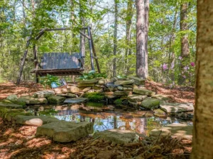 This 3-bedroom, 3-bathroom home is thoughtfully positioned on the 29.45 acres to maximize both privacy and scenic views. Inside, the home features an open-concept layout that allows natural light to flow throughout the living spaces. Large windows frame the surrounding woods and highlight the landscaping and water features, creating a strong connection between the interior and the outdoors. Even without listed square footage, the layout feels spacious and functional, making it ideal for full-time living or a private getaway in Piedmont, AL.