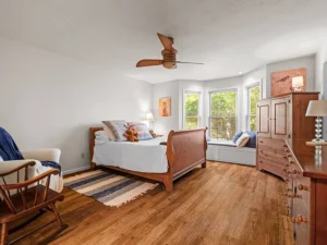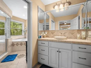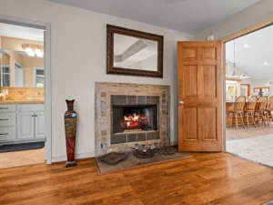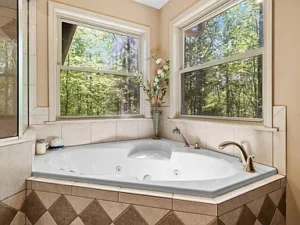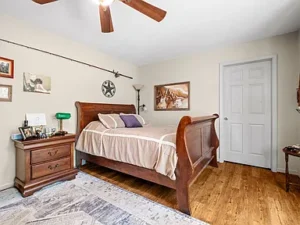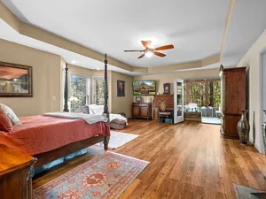 The primary suite offers a relaxing retreat within the home, complete with a cozy gas fireplace and access to a private screened porch. From here, you can take in the peaceful views of the water features and landscaped surroundings that make this 29.45-acre property in Piedmont, AL so special. The ensuite bathroom includes both a walk-in shower and a garden tub, along with a generously sized walk-in closet for added comfort and convenience.