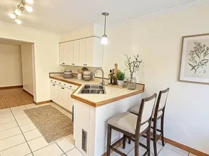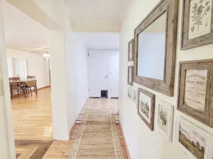 Upon entering, you’re welcomed by a spacious foyer highlighted by a unique oak and walnut inlay, setting the tone for the craftsmanship found throughout this home on 21.3 acres in Englewood, TN. The foyer opens into a large dining area featuring a gas fireplace, creating a warm and inviting space for gatherings. The kitchen is both functional and durable, equipped with a refrigerator, gas oven, microwave, tile flooring, ample cabinetry, and additional shelving for storage, along with convenient access to the rear of the property.