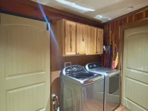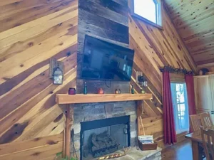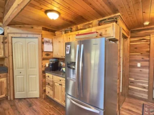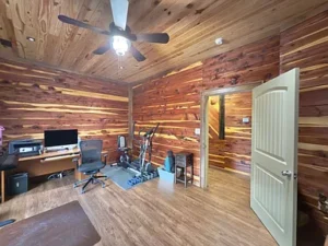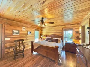 At the center of the property is a stunning Western-style home crafted from durable Western Cypress. This 3-bedroom, 3-bathroom residence spans approximately 1,944 square feet and is thoughtfully designed with a warm cedar interior and an open-concept floor plan. Large windows allow natural light to fill the space, creating a bright and inviting atmosphere that complements the peaceful surroundings of the 33.06 acres in Woodbury, TN.