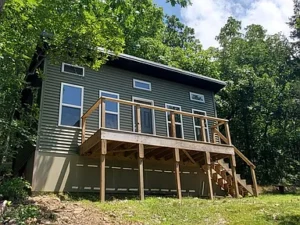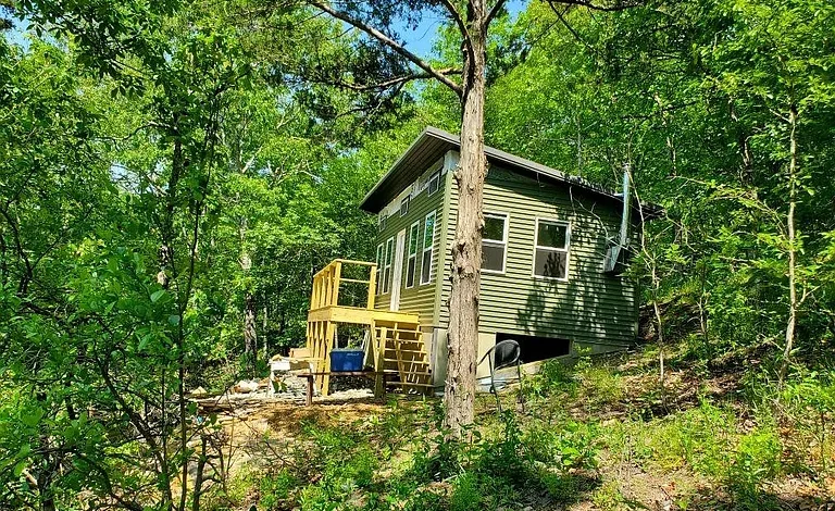 The cabin also includes a framed 5×8-foot room, already in place and ready for a future bathroom, giving you the opportunity to customize and expand the living space to suit your needs. Whether you’re envisioning a weekend retreat or a simple off-grid lifestyle, this cabin complements the beauty of the surrounding 45.27 acres in Ironton, MO.