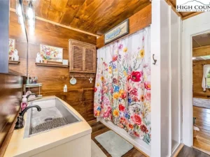 A wrap-around porch extends along two sides of the home, inviting you to relax and take in the peaceful surroundings of your 50.01-acre property in Piney Creek, NC. Whether it’s morning coffee or evening sunsets, this outdoor space perfectly complements the tranquil setting.