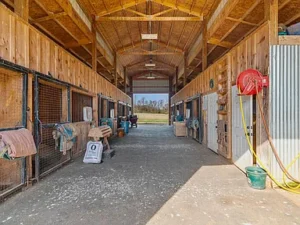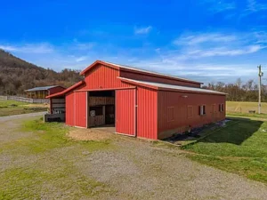 At the heart of the 62.06-acre farm in New Market, TN is the impressive main barn. Designed with equestrian needs in mind, the barn includes eight spacious 12×12 stalls, each fitted with rubber mats for comfort and safety. The barn also offers a cement wash bay with hot water, making grooming and care easier for horses and livestock. A large tack room provides ample storage for equipment and gear, while the addition of a half bathroom adds extra convenience for daily farm operations.