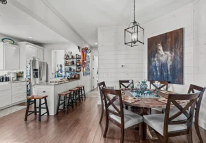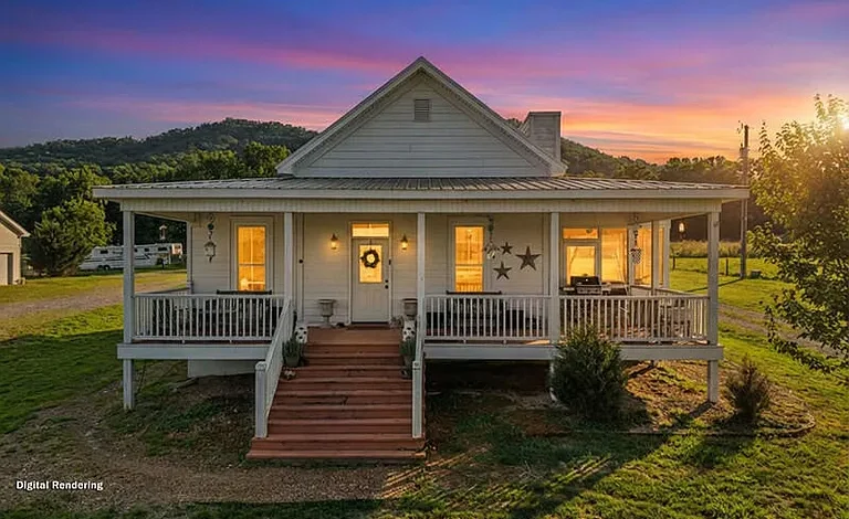 The modern farmhouse, constructed in 2017, sits comfortably on the 62.06-acre property and offers both charm and efficiency. The home includes 3 bedrooms and 2 bathrooms within 1,248 square feet of thoughtfully designed living space. The open floor plan creates a welcoming atmosphere, while high-quality finishes throughout the home provide both style and durability.