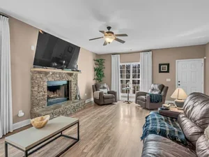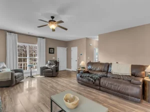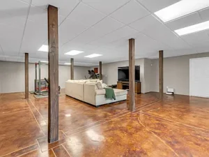 The finished basement significantly expands the living space within this 7.09-acre estate. Downstairs, you’ll discover an additional living area, a dedicated workout space, and flexible bonus space that can adapt to your needs. There is even a 10×10 room that could function as a safe room or gun room — a unique feature that enhances the versatility of this $650,000 hilltop home in Fayetteville, Tennessee.