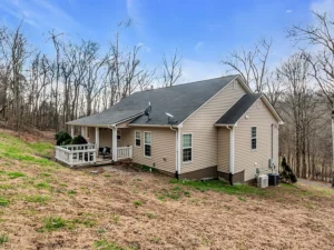 Inside, you’ll find custom kitchen cabinetry paired with stainless steel appliances, creating a stylish and practical cooking space. The open flow and generous room sizes make everyday living comfortable, while large windows invite natural light and frame the wooded views that surround this Fayetteville, TN property.