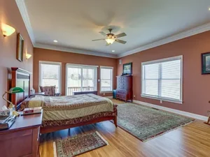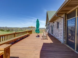 The spacious main-level primary suite, measuring 20×17, provides a private retreat within the home, complete with scenic views of the property. Step outside onto the deck to enjoy the peaceful countryside, or relax under the pavilion while taking in the beauty of this expansive Tennessee landscape.