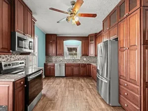 Step into timeless Southern elegance with this beautifully preserved 1899 Victorian set on a 2.02-acre in-town lot at 8370 Chicago Ave, Douglasville, GA. Priced at $215,000, this historic home offers classic character just minutes from shopping, dining, and everyday conveniences. Inside, you’ll find soaring ceilings, intricate original trim, stained-glass windows, and four fireplaces that reflect the craftsmanship of a bygone era. The fully updated kitchen blends historic charm with modern function, featuring custom cabinetry, granite countertops, and stainless steel appliances.