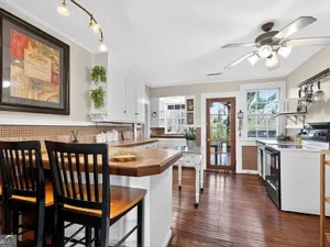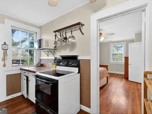 The main residence on this 14.13 acres in Rome, GA features 2 bedrooms and 2 bathrooms, blending timeless charm with modern comfort. Inside, you’ll find warm hardwood floors, abundant natural light, and inviting living spaces designed for relaxation. One of the highlights is the beautiful glass sunroom, offering panoramic views of the property and creating a serene space to enjoy every season. Step outside to a charming stone courtyard and pergola patio—perfect for outdoor dining and entertaining on your Rome, GA 14.13-acre retreat priced at $429,000.