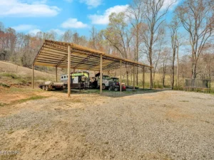 In addition to the main barn, the $450,000 property in La Follette, TN features a 40×60 open-air pole barn, ideal for storing tractors, trailers, hay, or farm equipment. There is also an insulated storage shed equipped with portable heating and air conditioning, which is currently being used as a dog kennel and tack storage area. This structure will remain with the property, making it perfect for animal lovers who want dedicated space for pets or equipment.