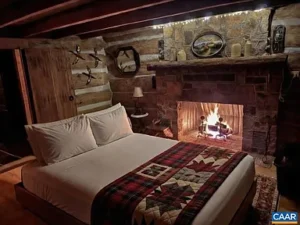 Despite its historic roots, the cabin has been thoughtfully updated with modern conveniences. One standout feature of this $649,000 Monroe, VA property is that the cabin is equipped with high-speed fiber internet from Firefly Fiber Broadband, making remote work or streaming in the mountains easier than ever. The kitchen and bathroom were completely rebuilt in 2025, featuring custom rustic ash cabinetry, chestnut wood shelving, new appliances, custom tile work, and natural stone accents sourced from the nearby James River.