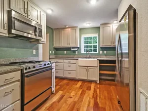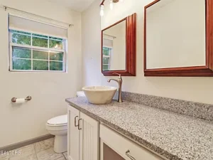 One of the standout features of this Crossville, TN home is the spacious great room addition. With durable tile floors and an open feel, this area provides the perfect place for entertaining guests, hosting family gatherings, or simply relaxing at the end of the day. The thoughtful design blends seamlessly with the original home, allowing the historic character to remain while enhancing the living space for modern lifestyles.