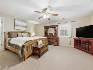 Inside the home, you’ll find a layout designed for both comfort and functionality. The cozy living room features a wood-burning fireplace, creating a warm and inviting atmosphere during cooler months. With 2,679 square feet of living space, the home offers generous room sizes that make it feel both spacious and welcoming. The primary suite is particularly large, offering a relaxing retreat within this Maryville, TN home on 5 acres.