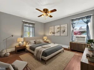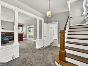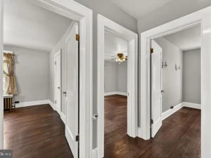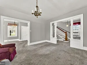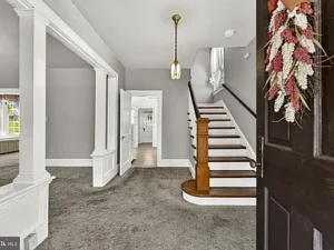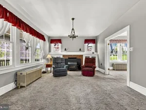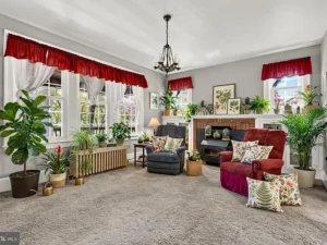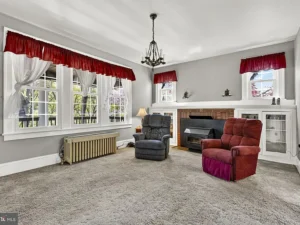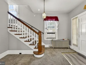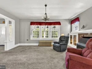 A thoughtfully designed rear addition expands the kitchen space and includes a convenient half bath on the main floor, making daily living more comfortable. There is also potential for hardwood floors beneath the carpeting, offering an opportunity for buyers to further enhance the home’s original appeal.