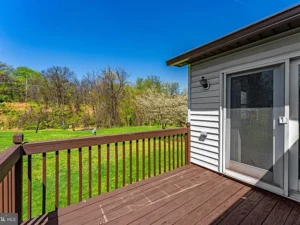 Upstairs, the home continues to impress with three bedrooms featuring hardwood flooring, along with a full bathroom. A cozy carpeted den provides additional living space and includes a sliding glass door that leads to a unique rooftop deck. This elevated outdoor area is perfect for enjoying your morning coffee, taking in the fresh West Virginia air, or simply admiring the peaceful views of your 3.65-acre property in Harpers Ferry, WV.