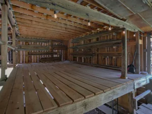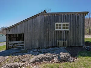 A large garage and workshop building adds incredible value to the 5.35 acres. Featuring a concrete slab, double motorized doors, mini-split system, 220V outlets, and wood stove capability, it’s ideal for projects, storage, or even small business use. An additional storage barn enhances the usability of the property while adding to its historic farm appeal.