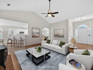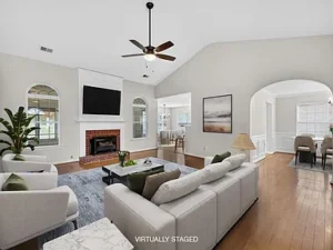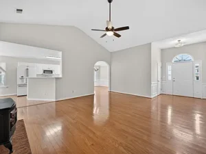 Inside, the open floor plan creates a natural flow between the main living areas. As you step into the home, you’re welcomed by a spacious living room that connects seamlessly to the kitchen, breakfast nook, and dining area. This layout makes the 0.32-acre property feel even more expansive, offering flexibility for both quiet evenings and hosting guests.