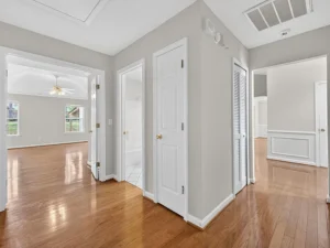 Two additional bedrooms share a full hall bath, offering flexibility for family members, guests, or even a home office. The single-level design ensures easy accessibility throughout the home, making it suitable for a variety of lifestyles.
