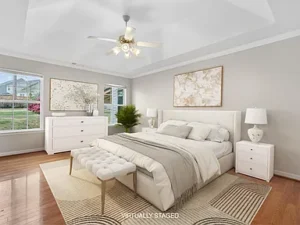 The primary suite serves as a private retreat within this 0.32-acre home. It features a generous sitting area, perfect for reading or unwinding, along with a private bathroom that includes a garden tub and separate shower. This thoughtful layout adds an extra level of comfort to this $285,000 property in Greenville, SC.