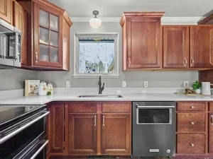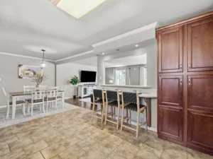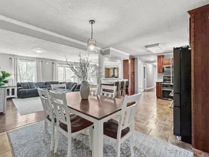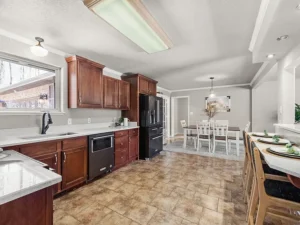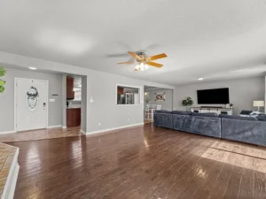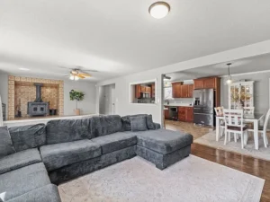 Inside, the home features 4 bedrooms and 3 bathrooms, all thoughtfully arranged on one level across 2,316 square feet. The layout is both practical and inviting, beginning with an open-concept kitchen that flows directly into the living room. This design allows for plenty of natural light and creates a warm, connected space perfect for gatherings or relaxing at home.