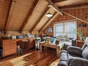 The layout of this 1.13-acre Mountain City, TN property offered at $269,500 includes 2 bedrooms and 2 bathrooms, along with a versatile upstairs loft. This loft space overlooks the great room and can serve as additional sleeping quarters, a cozy reading nook, or even a home office. Downstairs, you’ll find a large den perfect for gatherings, a bonus room currently used as an extra bedroom, a canning room, a laundry area, and additional storage space—making this home as functional as it is charming.