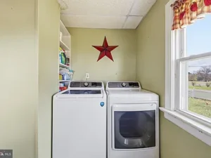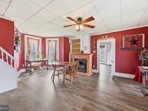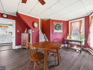 Inside, the main level features durable laminate and LVP flooring throughout, beginning with a laundry and mudroom that opens into a spacious kitchen filled with abundant cabinetry and pleasant outdoor views. The kitchen flows into the great room, currently used as the primary bedroom, featuring large windows, natural light, and a full closet. A formal dining room connects the living areas, ideal for gatherings, while a full bathroom completes the main floor. Upstairs offers three additional bedrooms and a second full bath, ready for personal touches. This property delivers space, versatility, and classic farmhouse appeal in a convenient Woodstock location.