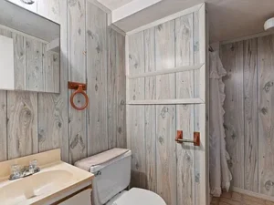 Outdoor living is a true highlight of this property. An 8-foot by 36-foot porch, paired with a wraparound side deck, offers the perfect place to relax, entertain, or simply enjoy the sights and sounds of the surrounding nature. Storage space beneath the deck adds practicality, while the elevated outdoor areas provide peaceful views of the wooded setting and flowing stream.