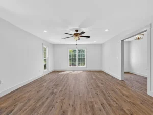 Inside, the 2,369-square-foot home has been thoughtfully renovated to feel like new construction. Featuring high-end LVP flooring throughout, the interior offers a seamless blend of durability and modern style. The spacious layout includes a large kitchen, dining area, and living room, all designed for comfortable everyday living and entertaining on your 10.5 acres in Prospect, Tennessee.