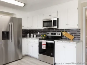 Located in the established Kinwood neighborhood near Methodist College, the home offers outstanding convenience with quick access to I-95, I-295, downtown Fayetteville, and Fort Bragg via the Ramsey Street corridor. The residence has seen extensive updates in 2025, including fresh interior paint, new appliances, carpet, LVP flooring, kitchen backsplash, laminate kitchen countertops, kitchen sink, multiple fixtures, exterior trim paint, partial driveway improvements, new garage doors, and updated electrical switches and outlets. The kitchen stands out with stainless steel appliances, subway tile backsplash, LVP flooring, and two separate pantries, while the owner’s suite features two closets for added comfort. A powder room and laundry room are located just off the two-car garage.