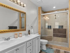 The split-bedroom floor plan offers an ideal balance of privacy and convenience. Two bedrooms are connected by a Jack-and-Jill bathroom on one side of the home, perfect for guests or family members. On the opposite end, the spacious primary suite provides a quiet retreat, complete with a spa-inspired bathroom featuring double vanities and an oversized walk-in shower. Every space has been carefully designed to feel comfortable, modern, and welcoming.
