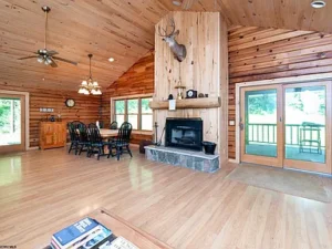 Modern systems ensure comfort and reliability throughout the year. The cabin is equipped with HVAC, a gas forced-air furnace, and an electric water heater. A 12×24 utility shed houses the water treatment system, ensuring a dependable and clean water supply while also offering extra storage space for tools and equipment.