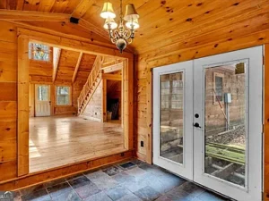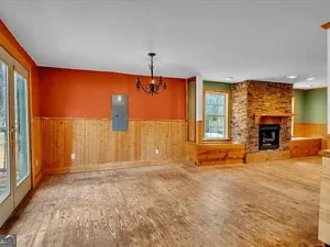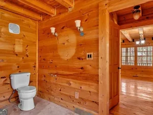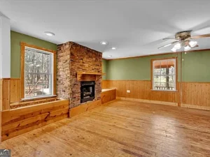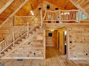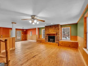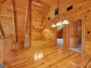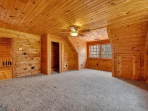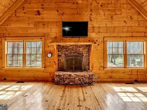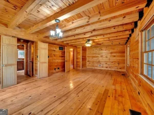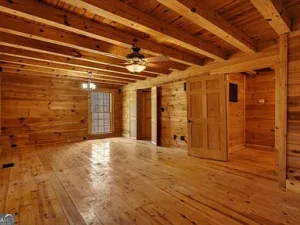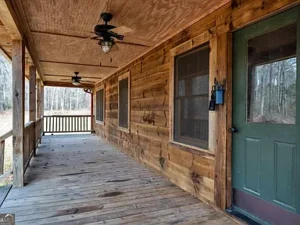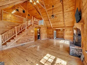 The log cabin itself features approximately 3,237 square feet of living space, with 3 bedrooms and 2.5 bathrooms designed to accommodate both comfort and functionality. Inside, the home welcomes you with a warm and inviting open floor plan, enhanced by two fireplaces that create a cozy, true cabin atmosphere. Natural wood elements throughout the interior further highlight the rustic charm that makes this Barnesville, GA property so special.