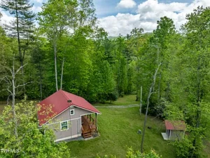 The land itself spans 10.62 acres, with approximately 1 acre already cleared, making it ideal for immediate use while still offering plenty of wooded acreage for seclusion and exploration. Surrounded by mature trees and mountain scenery, the setting provides a quiet escape while still being within reach of nearby attractions and conveniences.