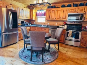 Inside this 1,536-square-foot log cabin on 2.67 acres in Fancy Gap, VA, you’ll find hardwood floors throughout and a stunning stone fireplace with gas logs, creating a warm and inviting focal point in the main living area. The open kitchen and living space flow seamlessly onto a large wraparound front and side deck, perfect for enjoying your morning coffee, evening sunsets, or entertaining friends and family while taking in the natural beauty of the mountains.