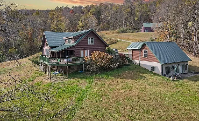The main residence features 4 bedrooms and 1.5 bathrooms, with an additional in-law suite that expands the layout to 5 bedrooms and 2.5 bathrooms total. Altogether, the home offers approximately 3,808 square feet of living space, giving plenty of room for family members, guests, or multi-generational living on this spacious 59.91-acre estate in Lost Creek, WV.