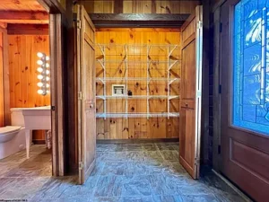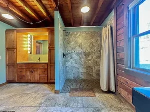 Inside the home, you’ll find a warm and welcoming interior filled with character. Vaulted ceilings create an open and airy feel throughout the main living areas, while wood and tile flooring provide durability and rustic charm. The bedrooms feature comfortable carpeting, and the home also includes custom countertops that add a unique touch to the kitchen and living spaces. These thoughtful design elements make the Lost Creek, WV home on 59.91 acres both stylish and practical for everyday living.