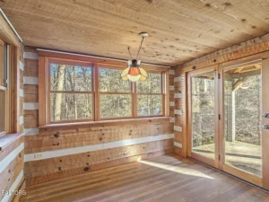 The home itself features 3 bedrooms and 2 bathrooms across approximately 1,456 square feet, designed with comfort and warmth in mind. Inside, you’ll find inviting living spaces accented by natural wood tones that enhance the cabin-style feel. A cozy wood-burning fireplace serves as the centerpiece of the home, creating the perfect spot to relax during cooler Tennessee evenings. This 7.97-acre property in Knoxville, TN offers a welcoming atmosphere that feels like home the moment you step inside.