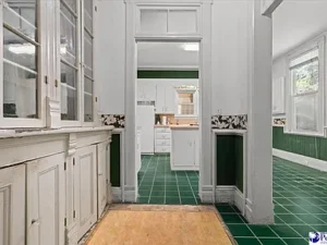 Inside, the home offers approximately 4,020 square feet of living space, featuring 5 bedrooms and 3 bathrooms. From the moment you walk in, you’ll notice the preserved historic details that give this home its unique appeal. Original flooring runs through much of the house, complemented by soaring ceilings ranging from 12 to 14 feet high. The home also features an impressive total of 8 fireplaces, each with its own mantel, adding warmth and character to multiple rooms.