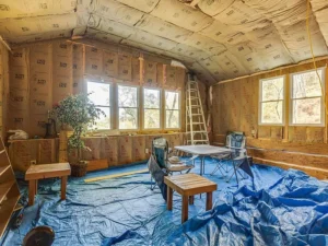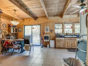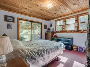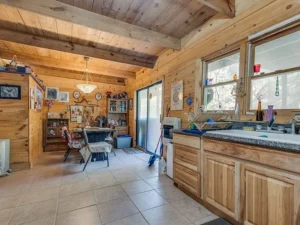 Inside, the cabin welcomes you with warm character and an open layout designed for gathering and relaxation. The living spaces feel inviting and functional, while the bedrooms provide quiet retreats after long days spent outdoors. Upstairs, an unfinished room with large windows overlooks the surrounding acreage, offering incredible potential for a future loft, home office, studio, or guest suite with sweeping wooded views.