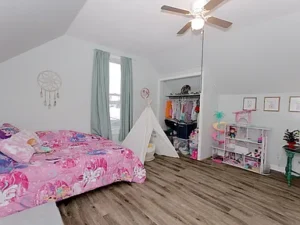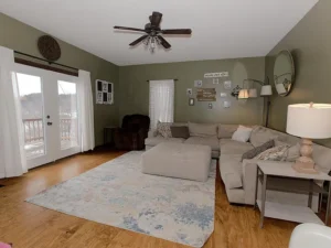 Inside, the home features a practical and welcoming layout filled with natural light. Recent improvements add peace of mind and value, including a newer roof installed in 2022 and a new furnace in 2024. French doors added in 2021 open from the main living area to a deck overlooking the lean-to and pond, creating a relaxing connection between indoor and outdoor living. New carpet has been installed in the owner’s suite, staircase, upstairs loft, and second upstairs bedroom, refreshing the upper-level living spaces. The kitchen comes fully equipped, with all appliances conveying, including a stove replaced in 2020 and a dishwasher added in 2024.